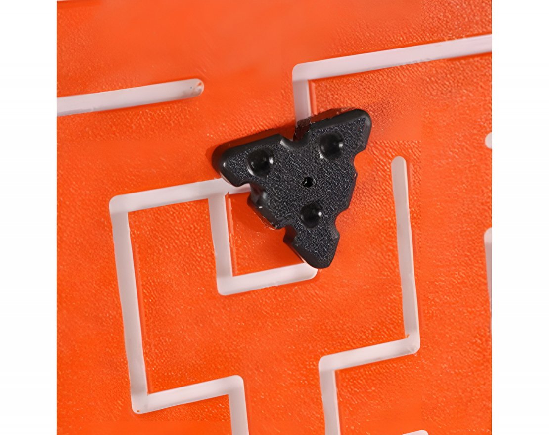 Подходит для установки на игровых площадках. Состоит из прямоугольного игрового пространства, изготовленного из полиэтилена низкого давления (HDPE), и треугольного бегунка, двигающегося по лабиринту.