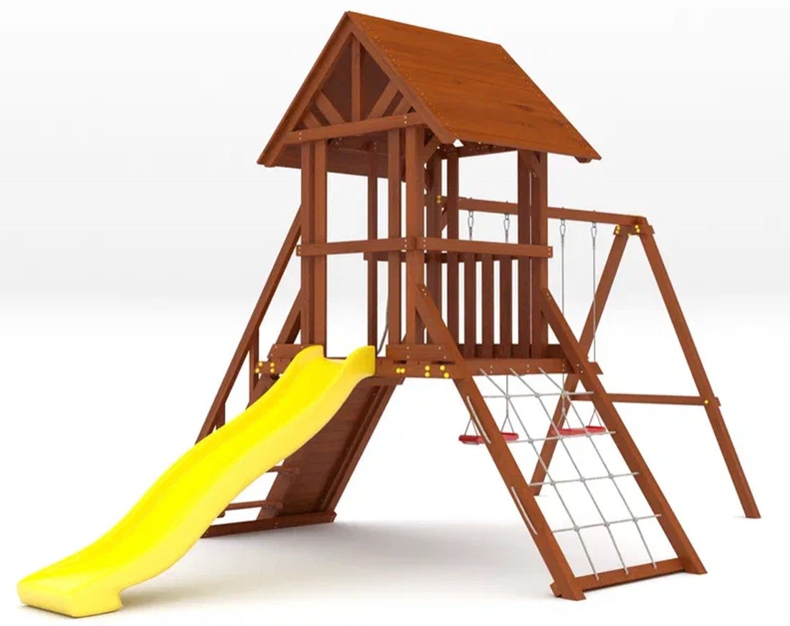 Продуманное игровое пространство, которое сочетает активные развлечения и спортивные элементы. Подходит для дачи и загородного дома, обеспечивая безопасность и комфорт во время активных игр.