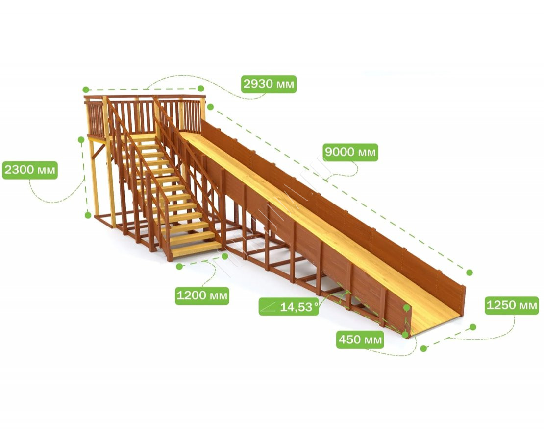 Все поверхности тщательно шлифуются на специальных станках, а углы скругляются. Площадка горки имеет дополнительные ограждения – позаботились о безопасной игре ваших детей.