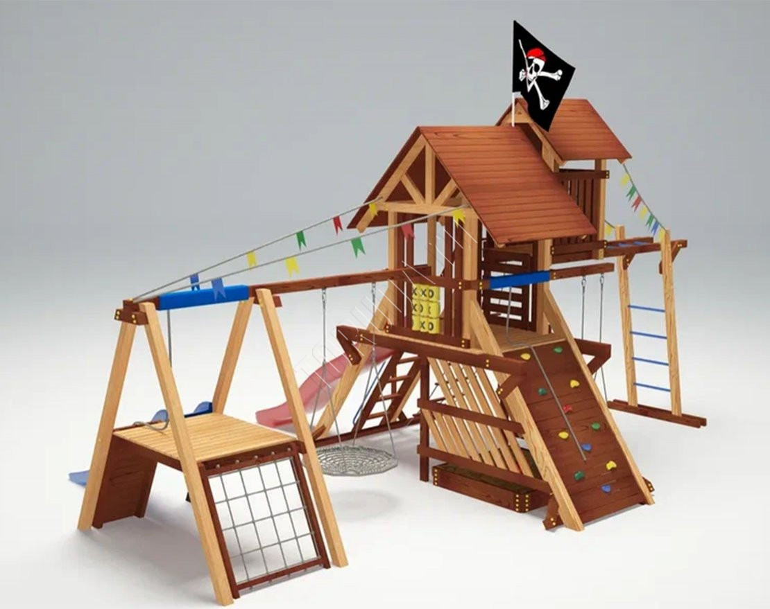 Площадка Галиот 10 обладает довольно широким функционалом (который по желанию можно легко расширить). А на качелях могут кататься даже родители! Детская площадка предназначена для дачи, коттеджа.