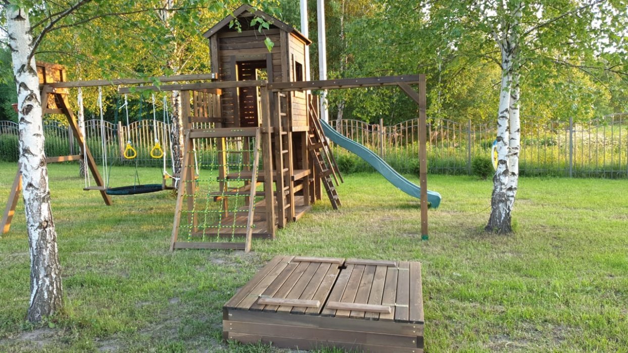 Надежная и долговечная детская игровая - спортивная конструкция из древесины сибирской лиственницы для детской площадки в дачных домовладениях, загородных участках и поместьях (только частные владения, для личного пользования), поможет организовать интересный досуг детям в условиях загородной жизни и отлично сочетается с природным ландшафтом. Конструкция не предназначена для установки и эксплуатации в зонах общего пользования: городские дворы, городские парки, общедоступные детские игровые площадки.
