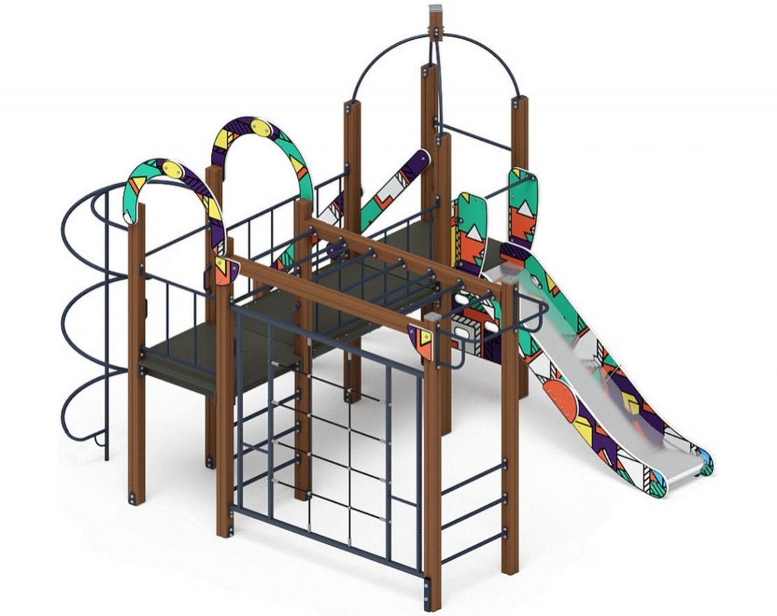 • Особенности комплектации: турник, рукоход, гладиаторская сетка, горка, скалодром, лестница