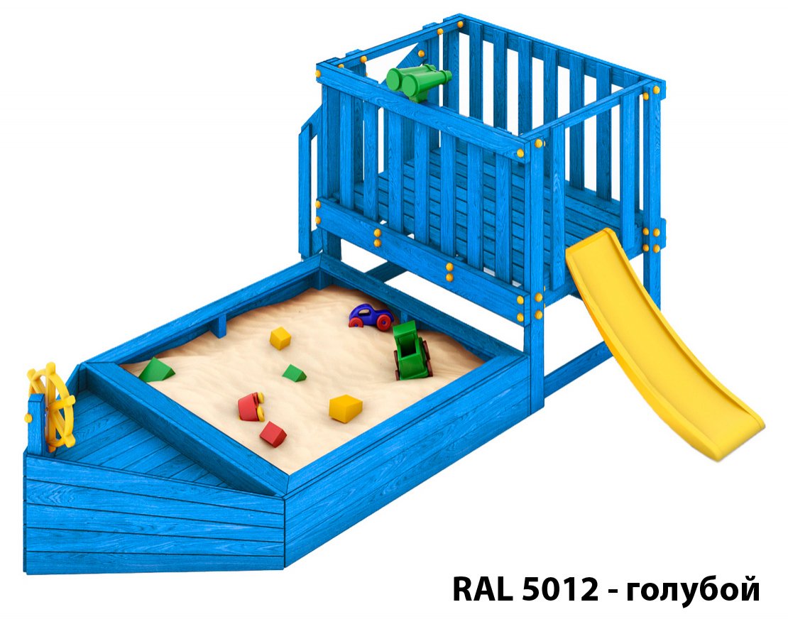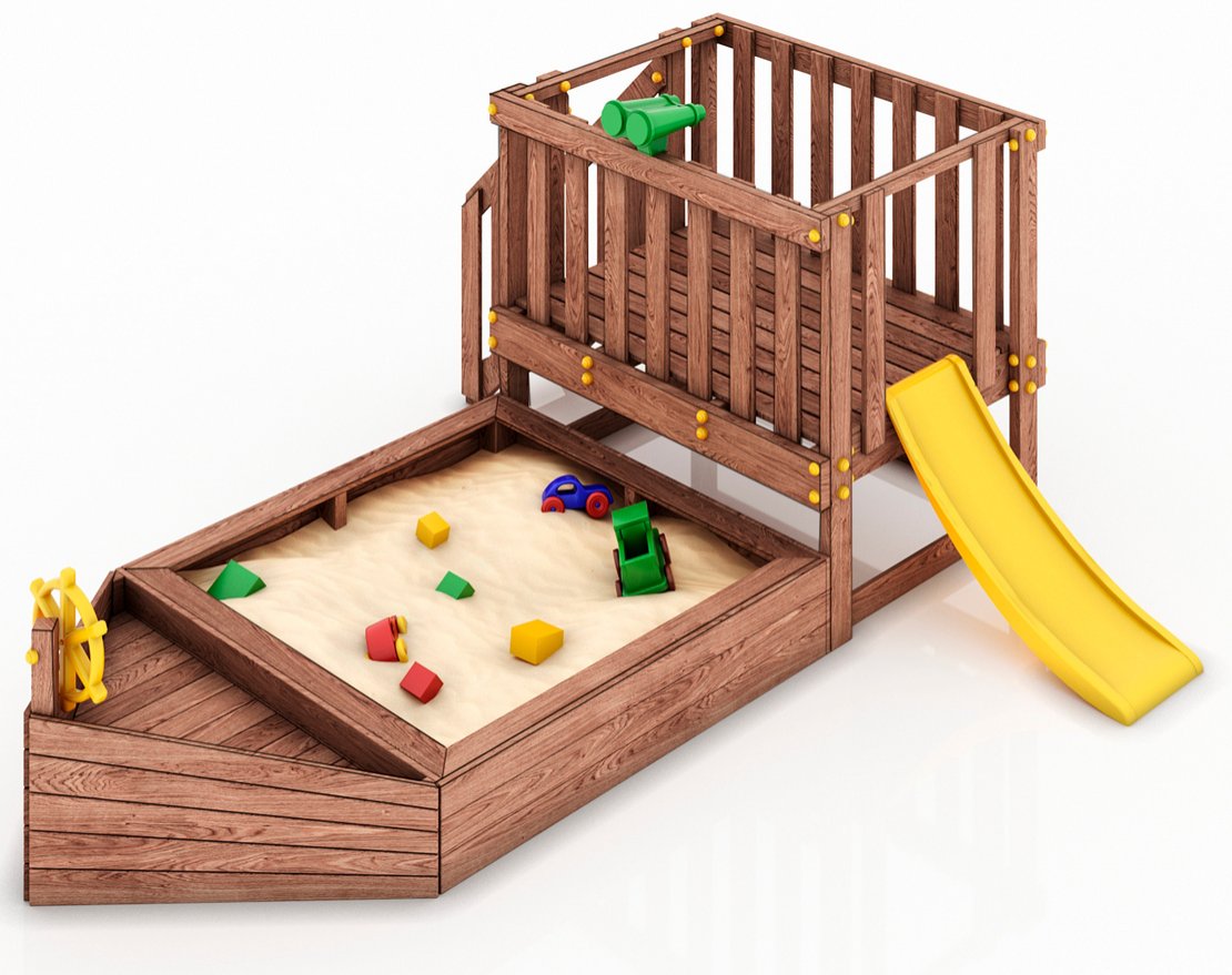 Детская песочница-кораблик и капитанский мостик с горкой с высоты 600 мм.