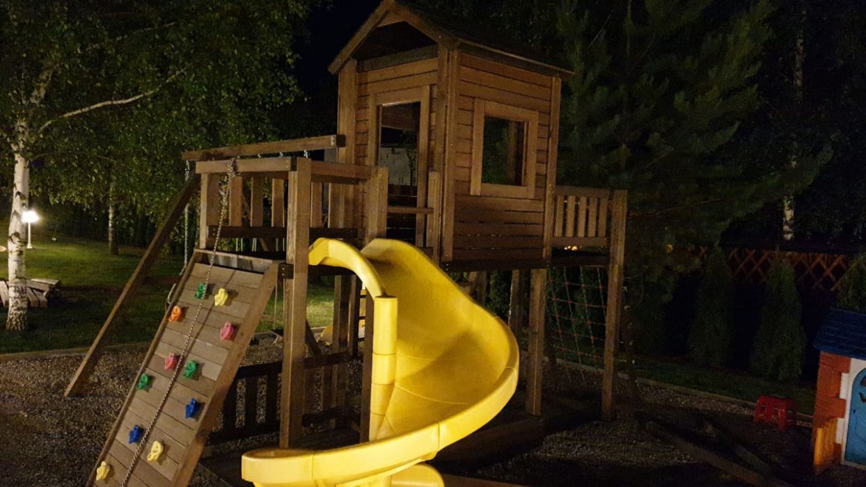 Рекомендуем дополнить модель подвесным оборудованием (гимнастический канат). Добавят ярких эмоций в развивающие игры ребенка бинокль и штурвал, а спортивные занятия с ребенком поможет разнообразить турник и баскетбольное кольцо.