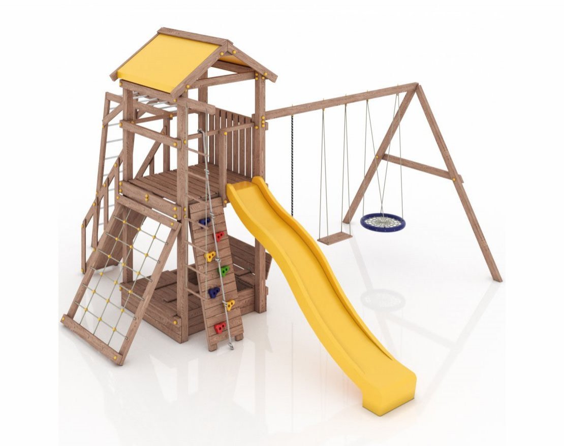 Максимально возможная комплектация в сочетании с качелями-гнездом. Детская площадка в полной комплектации позволит вашим детям разнообразить свои игры на свежем воздухе, а так же пригласить своих друзей для веселого времяпрепровождения. Места хватит всем!