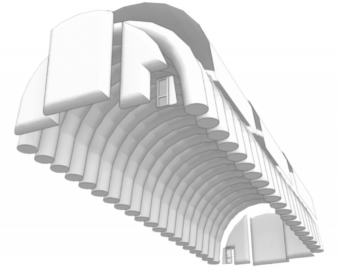 Каждый пневмобаллон - конструкция в форме половины тора, который в автоматическом режиме наполняется воздухом при помощи интеллектуальной системы подкачки. Торцевые стенки оснащаются дверными блоками, пневмоворотами, проемами для приточно-вытяжной вентиляции и теплоизолированными каналами под дымоход.