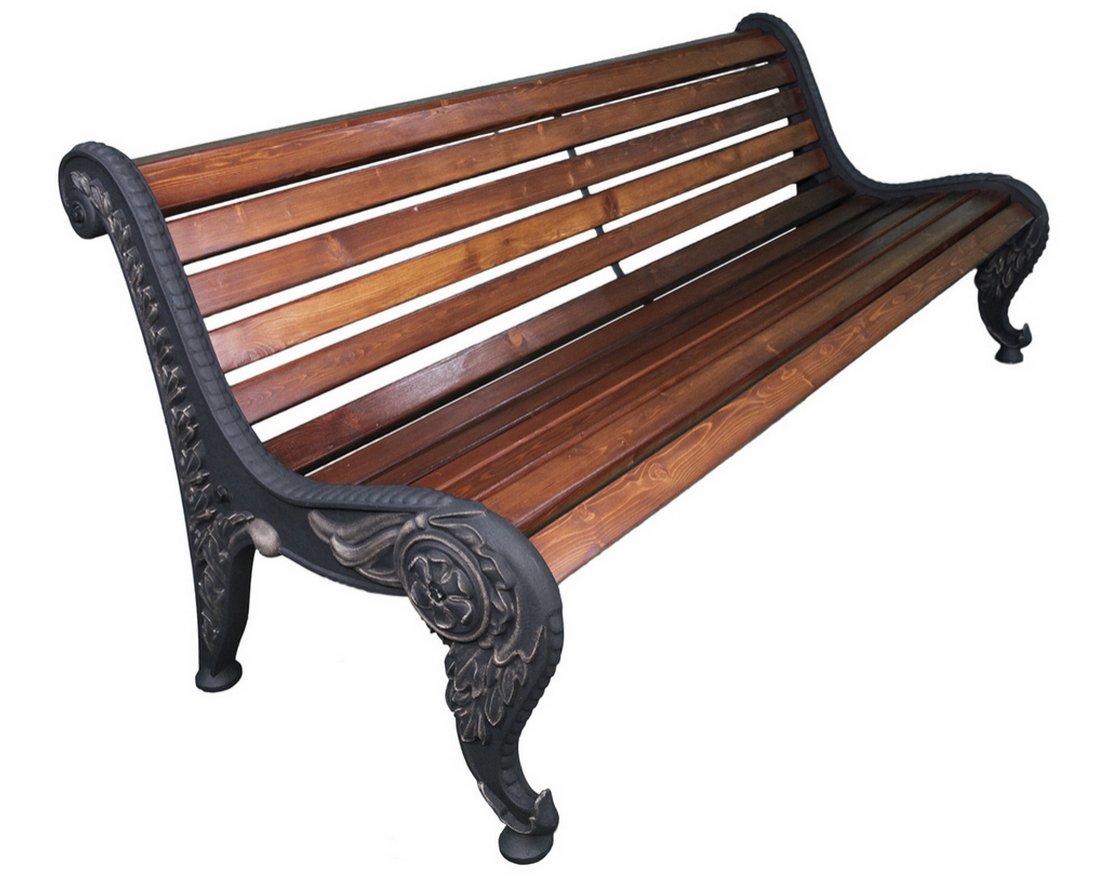 Скамейка Астра отличается продуманным дизайном, плавностью линий, надежностью и долговечностью. Устойчивость конструкции обеспечивают массивные опоры из художественного чугунного литья. Сиденье и спинка выполнены из лиственницы, обработанной современными лакокрасочными материалами. Плавный переход от сиденья к спинке обеспечивает сидящим максимальный комфорт.