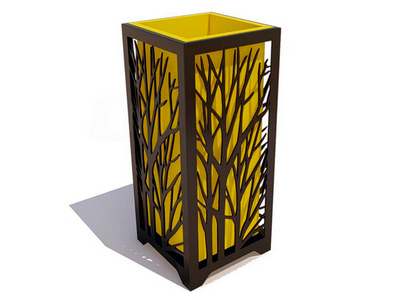 Каркас урны «Роща» выполнен из листовой стали с применением лазерной резки. Покрыт порошковой полимерной краской. Стандартный цвет по умолчанию – чёрный муар.