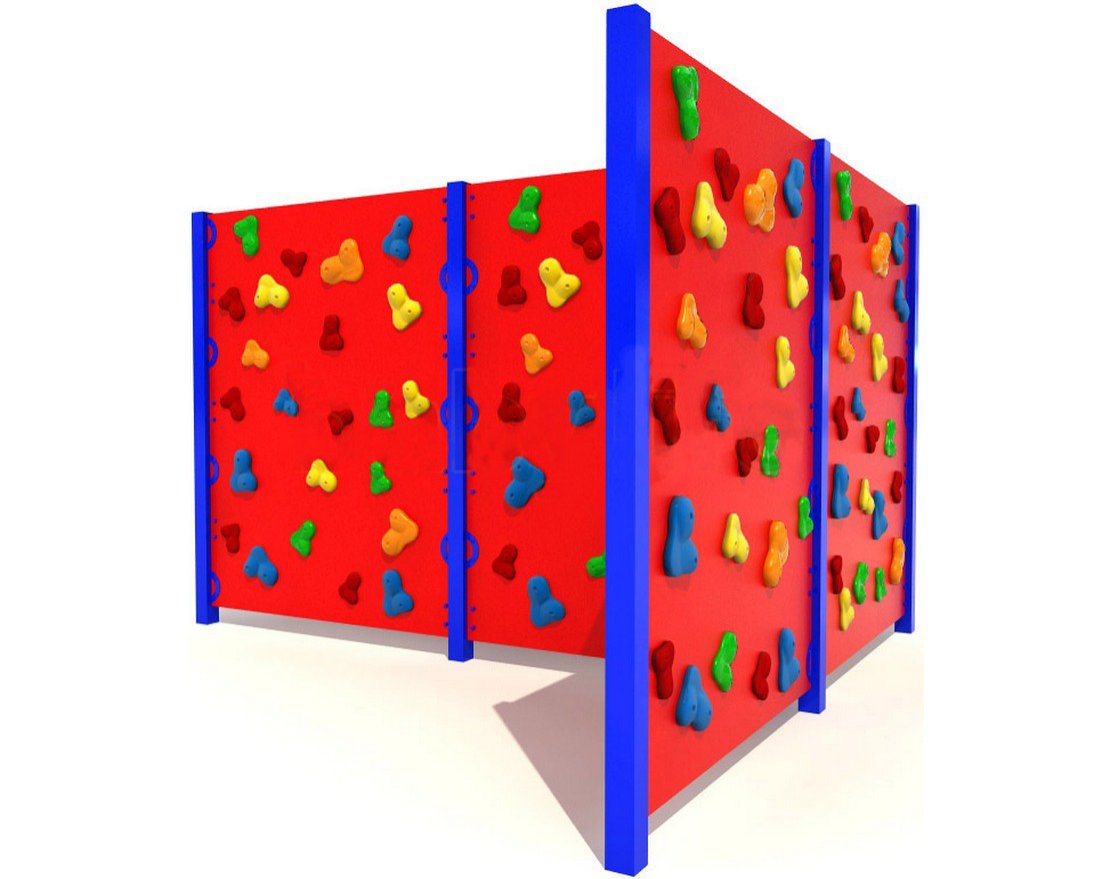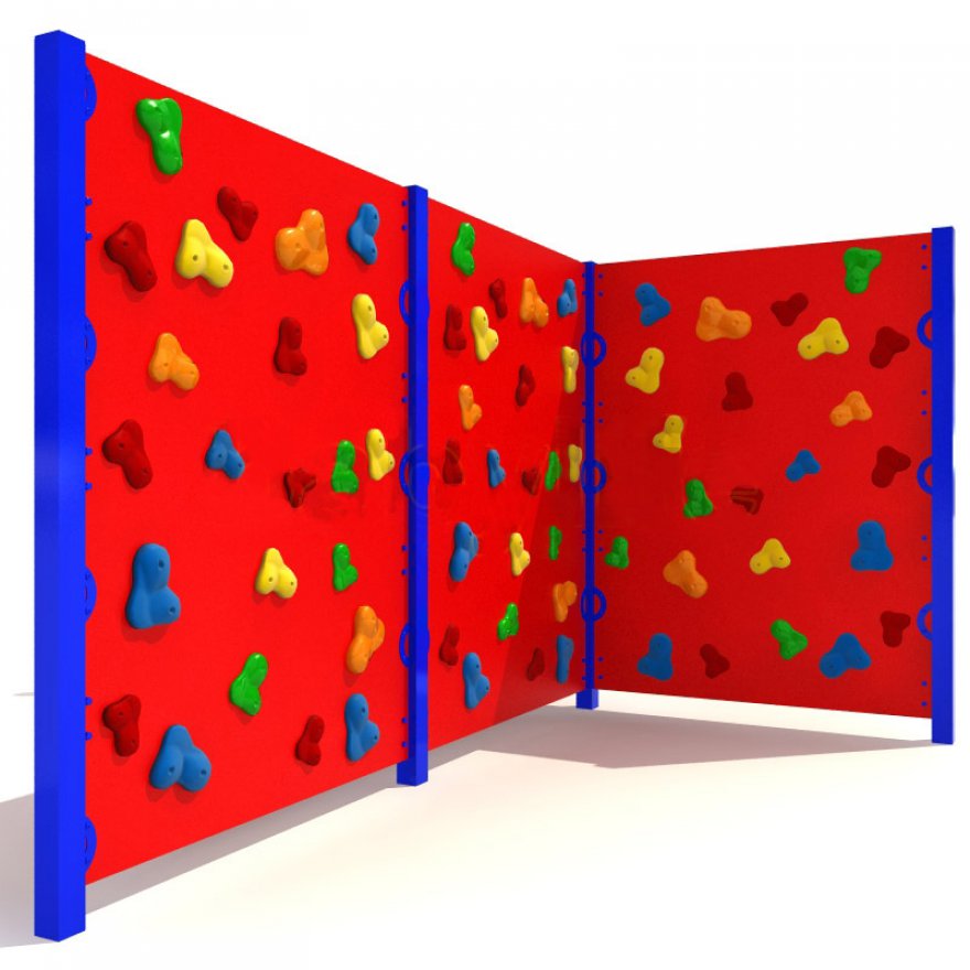 Удобный, красочный скалодром прекрасно подойдёт для любой детской площадки, благодаря Г-образной форме, он займёт минимум места, может располагаться у стен или забора. Яркие оттенки и очень крепкие надёжные зацепы гарантируют удовольствие и безопасность детям самого разного возраста.