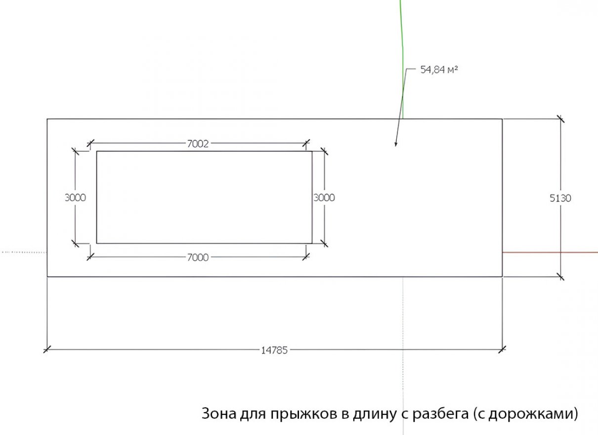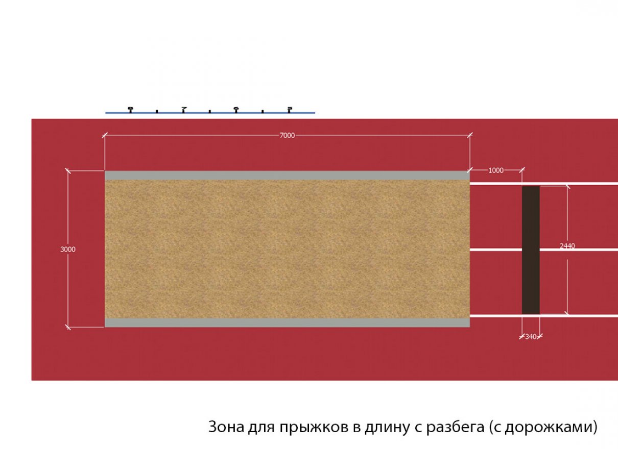 Зона для прыжков в длину с разбега (с дорожками)